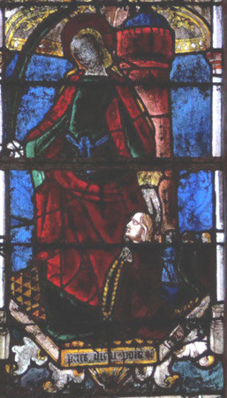 A gauche, sur un support hexagonal, le donateur, présenté en Saint Jean Baptiste