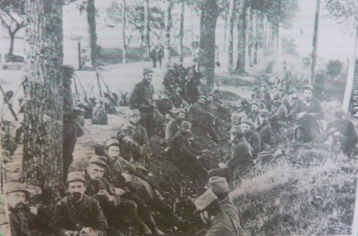 Fantassins français assis dans un fossé de Montmort-Lucy.