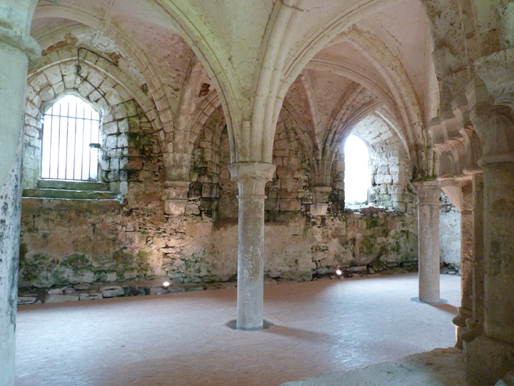 La salle capitulaire ou salle du chapitre est ouverte sur le cloître.
