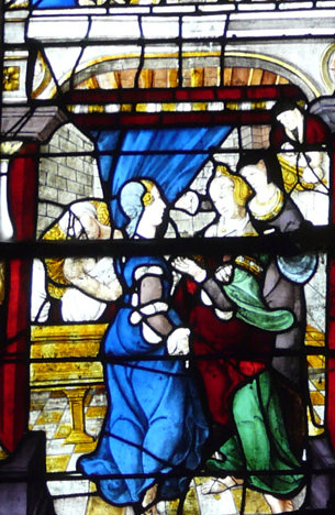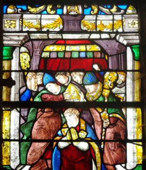 Il jeta alors sucessivement trois bourses remplies d'or par la fenêtre dans la maison de son voisin.